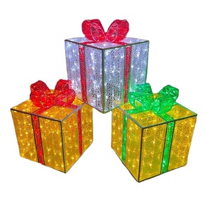 쇼핑몰 장식 야외 LED 크리스마스 선물 상자 빨간색 파란색 따뜻한 흰색 조명과 PVC 소재 AC에 의해 구동